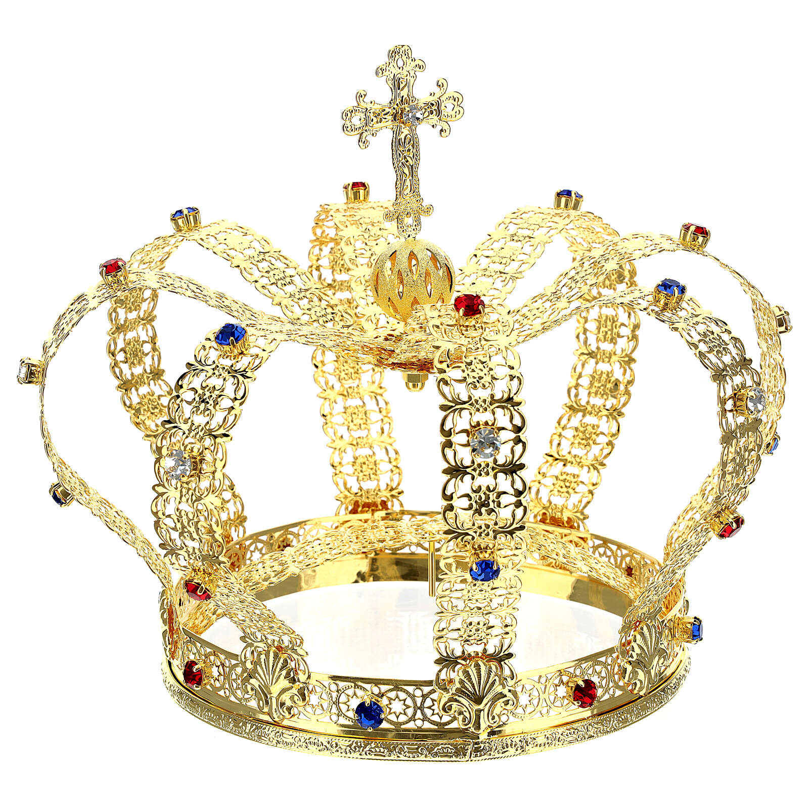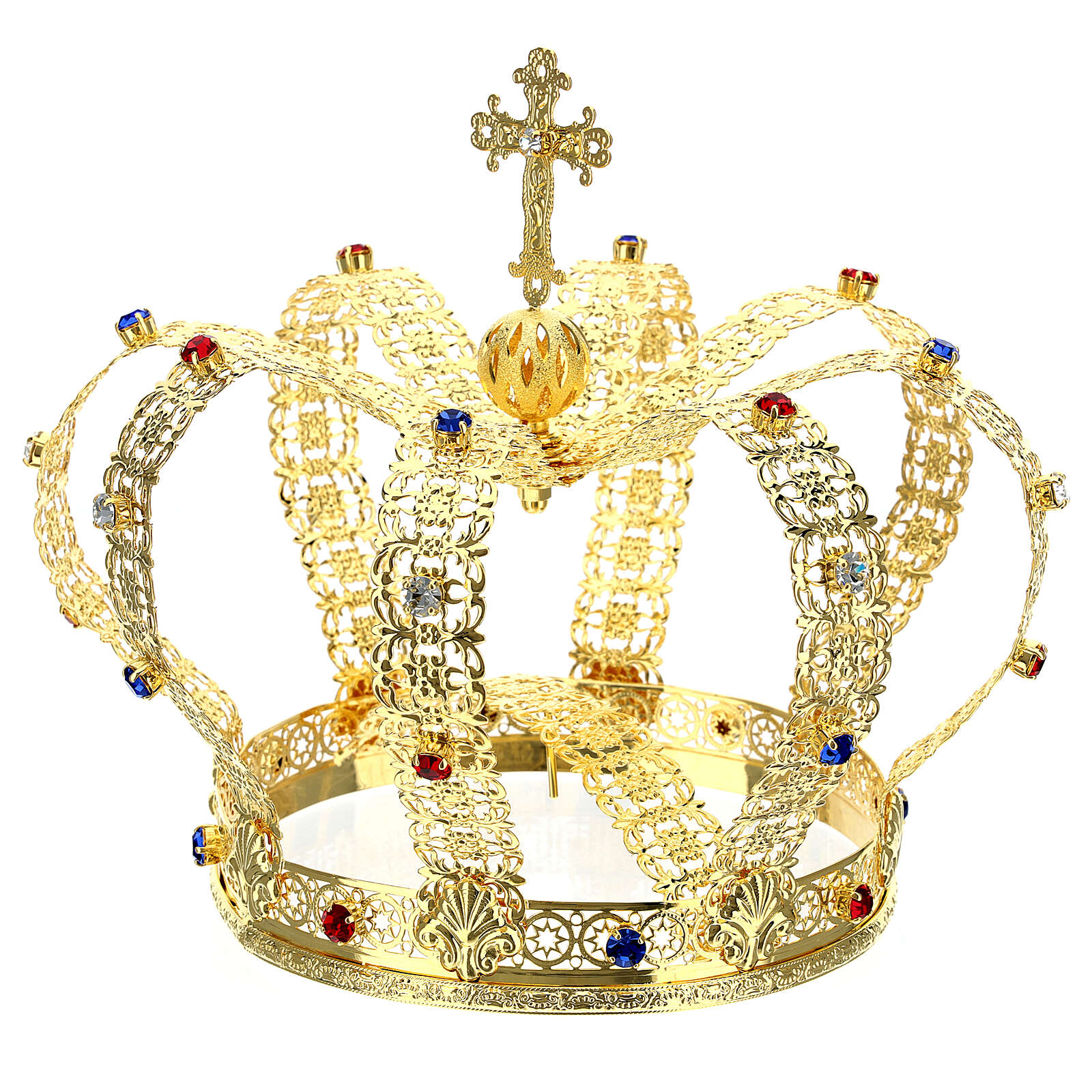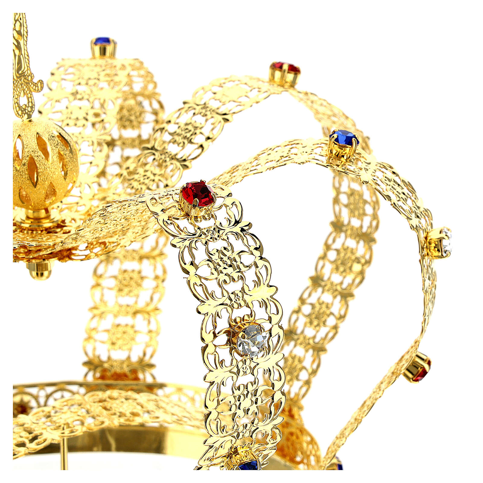 Korona w stylu cesarskim pozłacana, z krzyżem składanym na czubku i białymi klejnotami.