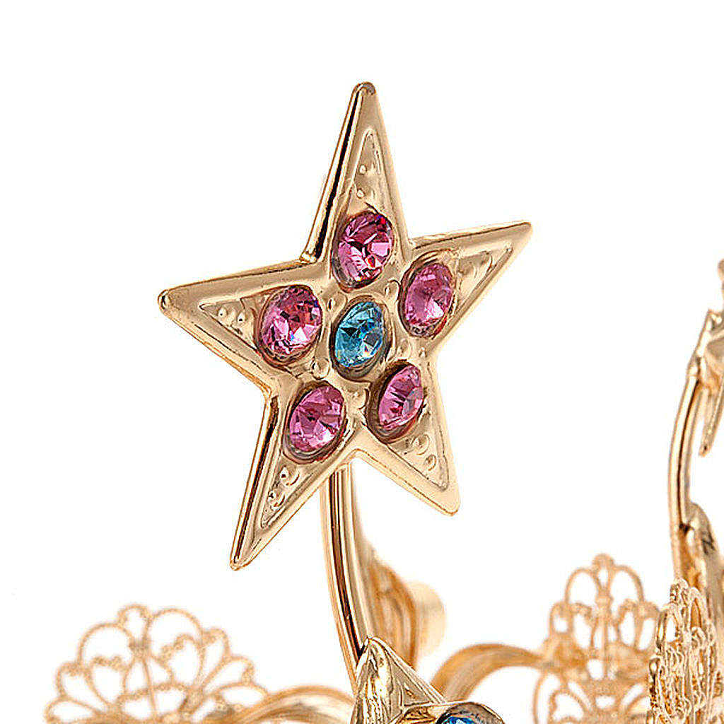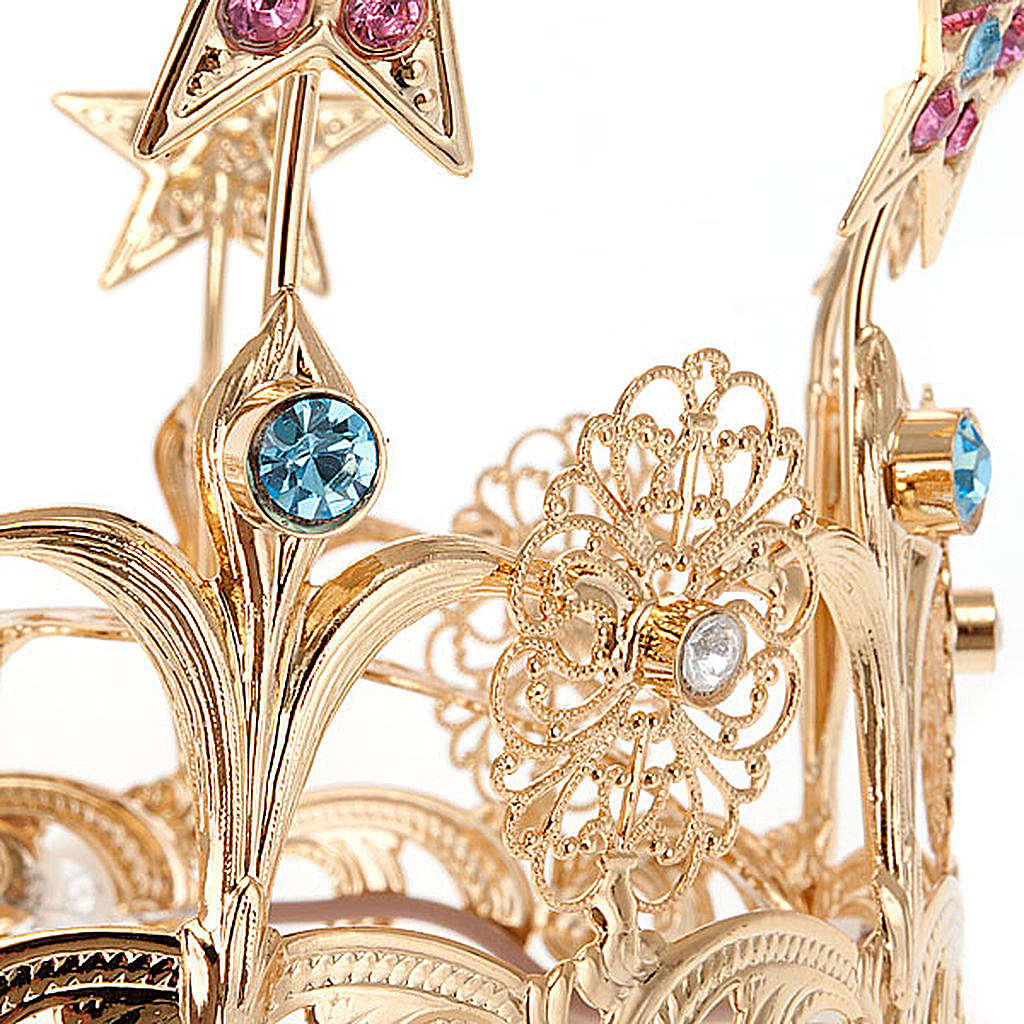 Korona podświetlana na led, mosiądz z filigranem kolor złoty i strass.
