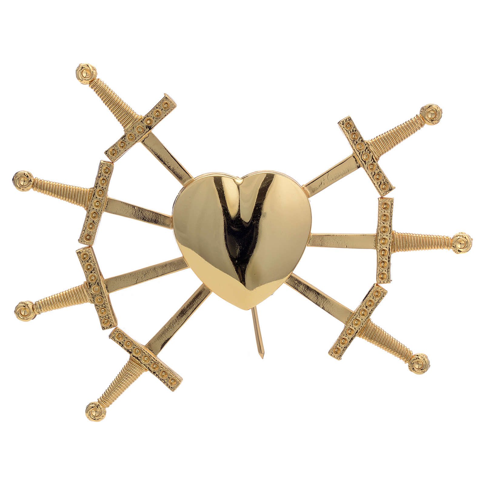 Serce z 7 mieczami mosiądz pozłacany 16 cm