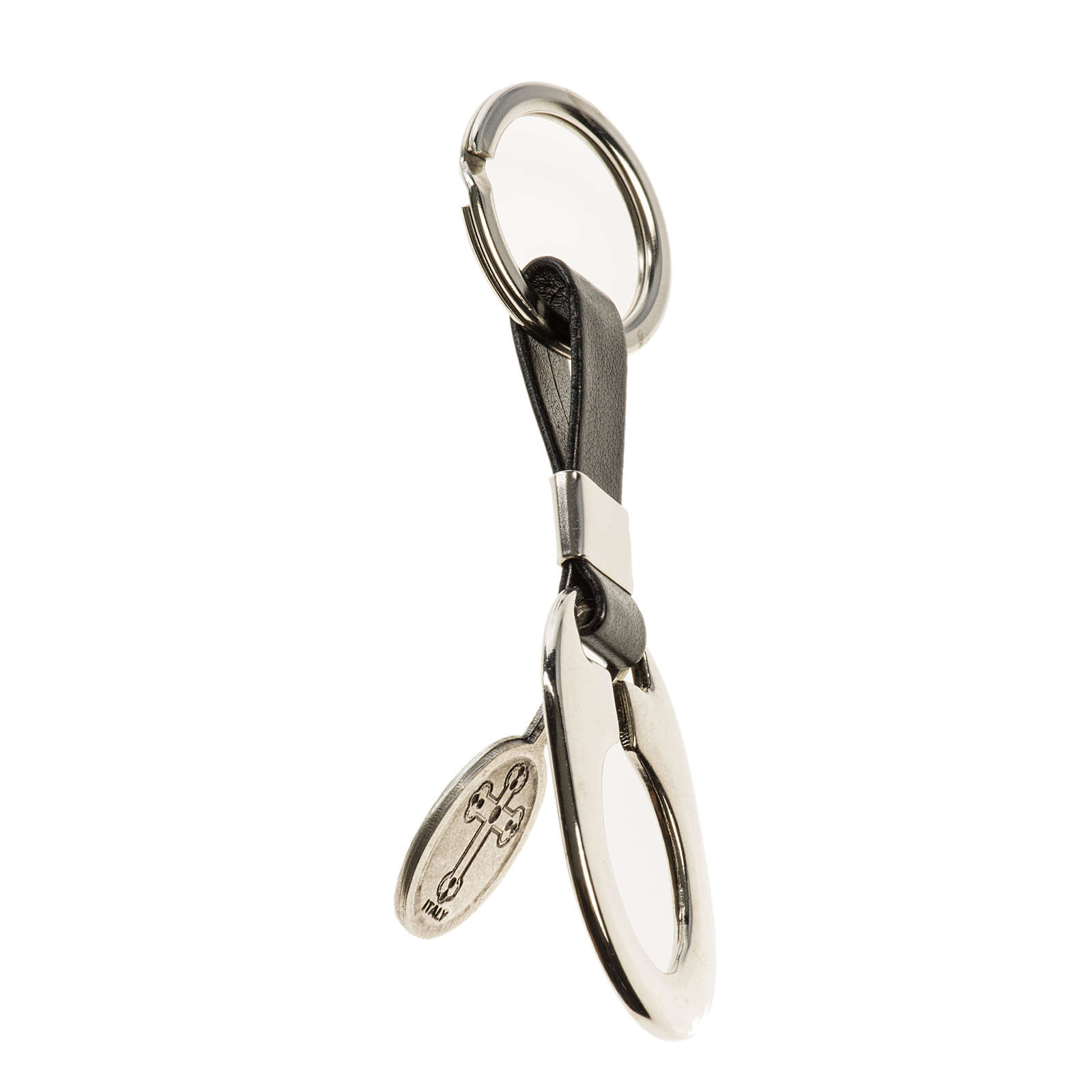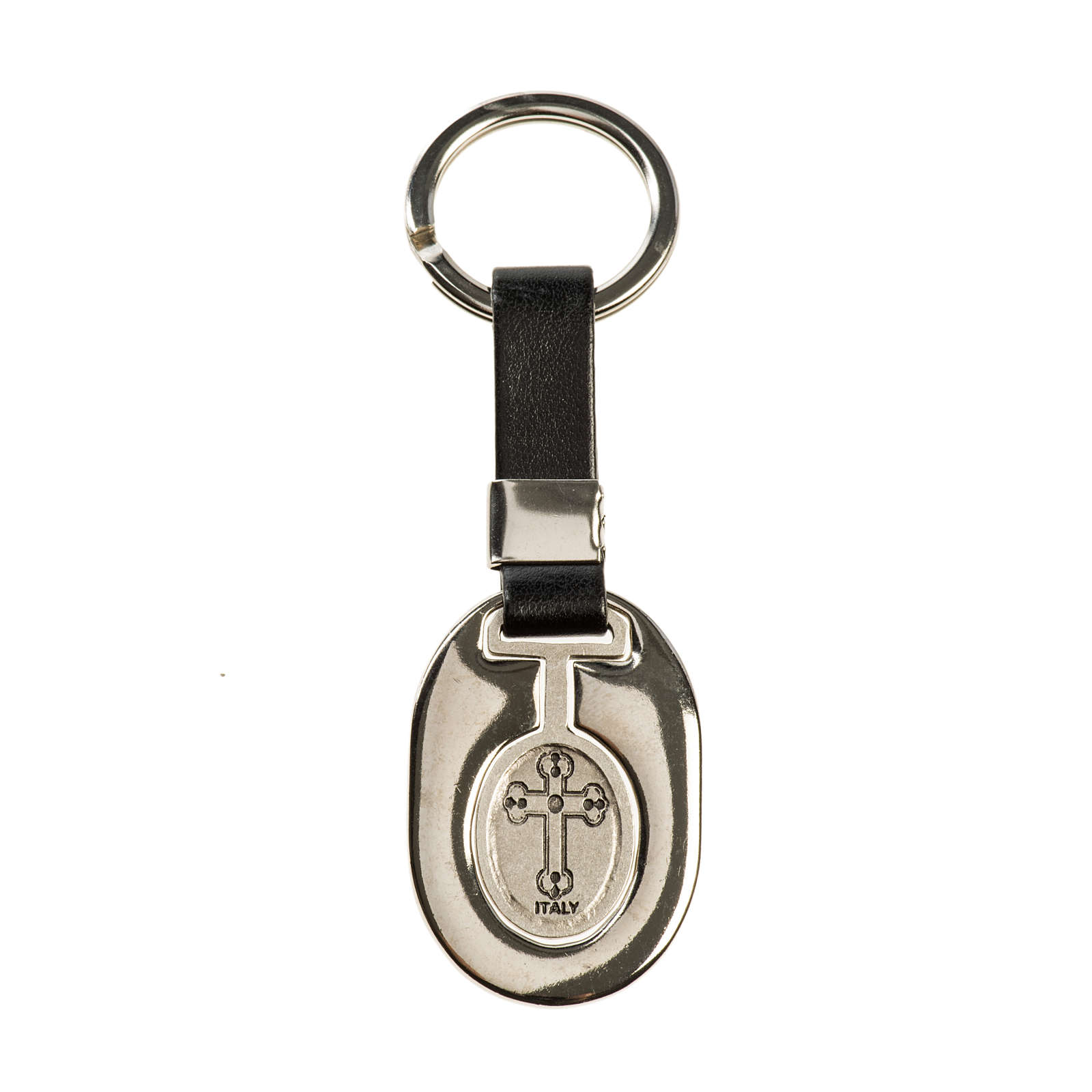 Brelok wykonany z zamy posrebrzanej, z obrazkiem świętego Krzysztofa.