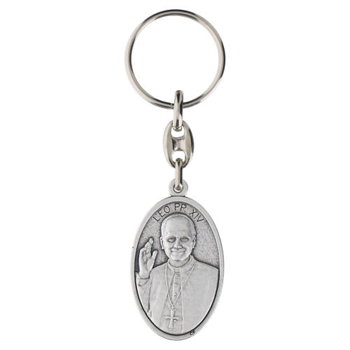 Brelok z Papieżem Leonem XIV, zamak posrebrzany, 4,5×2,5cm.