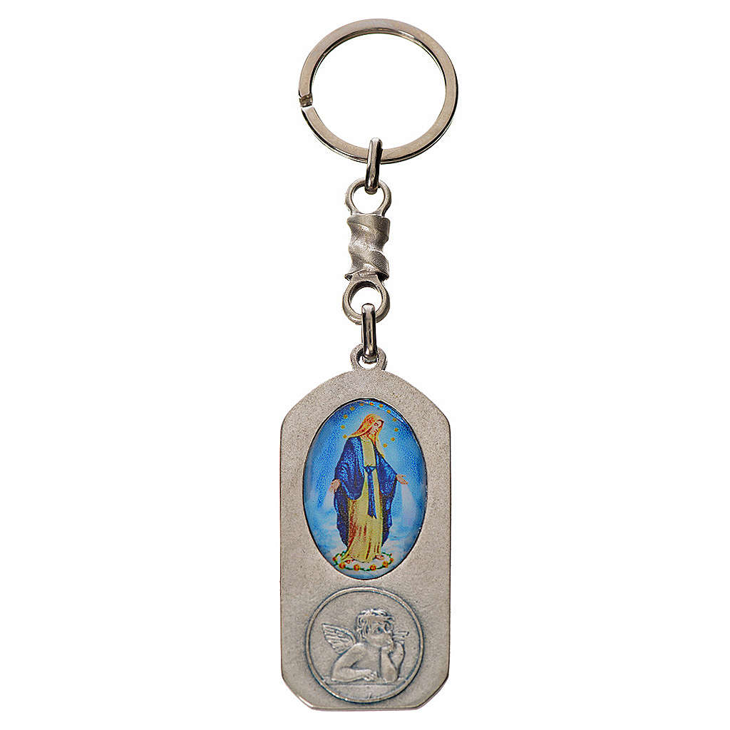 Brelok wykonany z zam, z obrazkiem Matki Boskiej; wymiary 5,2 X 2,5cm.
