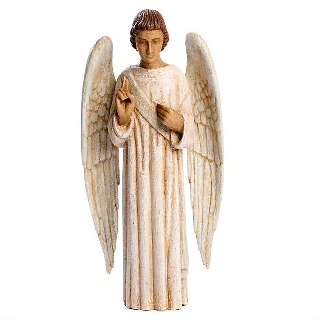 Figurka Anioła Zwiastowania została wykonana z drewna i ręcznie pomalowana przez siostry Atelier San Joseph z Klasztoru Bethleem.