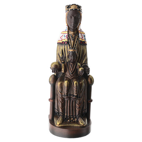 Ręcznie wykonana rzeźba z Val Gardena z drewna klonowego przedstawiająca Matkę Bożą z Montserrat z Dzieciątkiem.