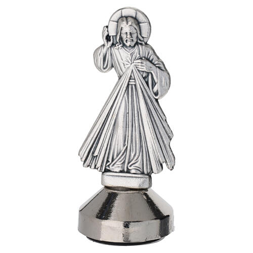 Posrebrzana figurka Jezusa Miłosiernego wykonana ze stopu zamak o wysokości 5 cm (łącznie z podstawą).