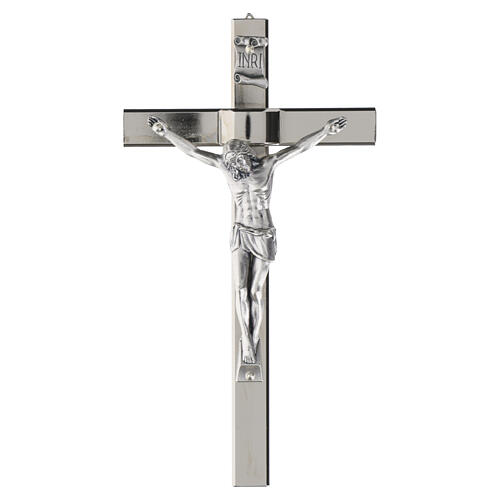 Postać Chrystusa odlana z zamaku (stop cynkowo‑aluminiowy) i modelowana w reliefie; polerowane wykończenie uwydatnia detale rzeźbiarskie.