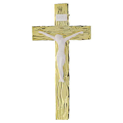 Krucyfiks ścienny pozłacany, efekt drewna, postać z białej żywicy, 16×8 cm