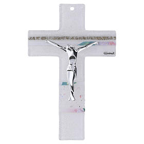 Krzyż wielobarwny ze szkła Murano, z figurą Chrystusa w srebrnym wykończeniu, 16 x 10,5 cm