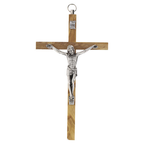 Krucyfiks z drewna oliwnego, metalowe ciało Chrystusa, 16cm