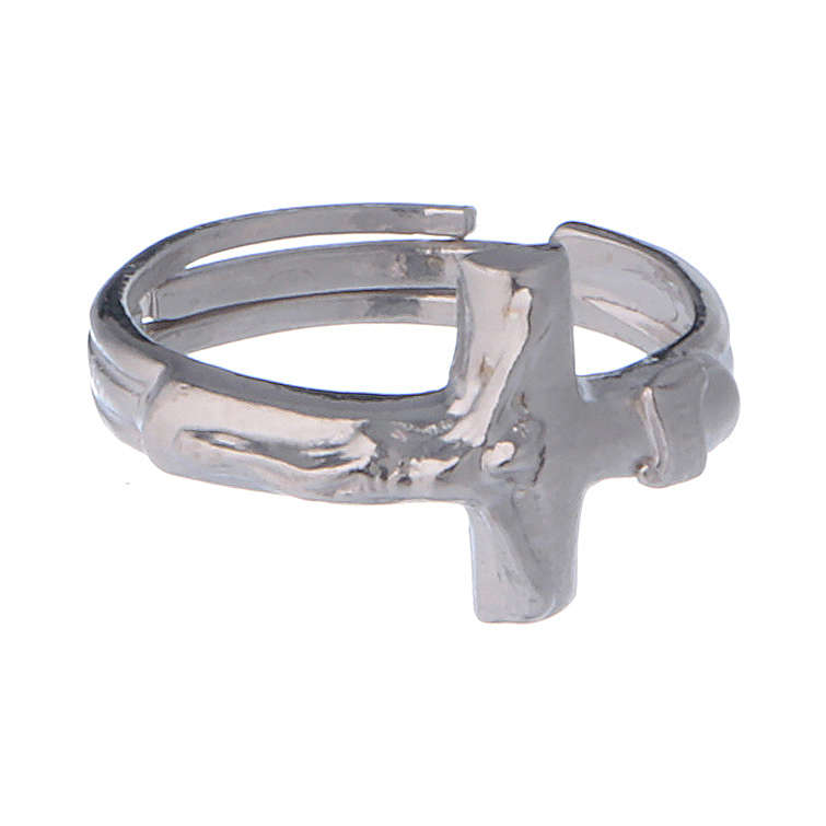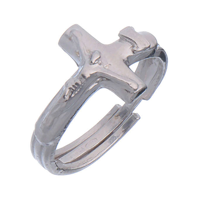 Pierścionek z krucyfiksem ze srebra 925 o regulowanej strukturze.