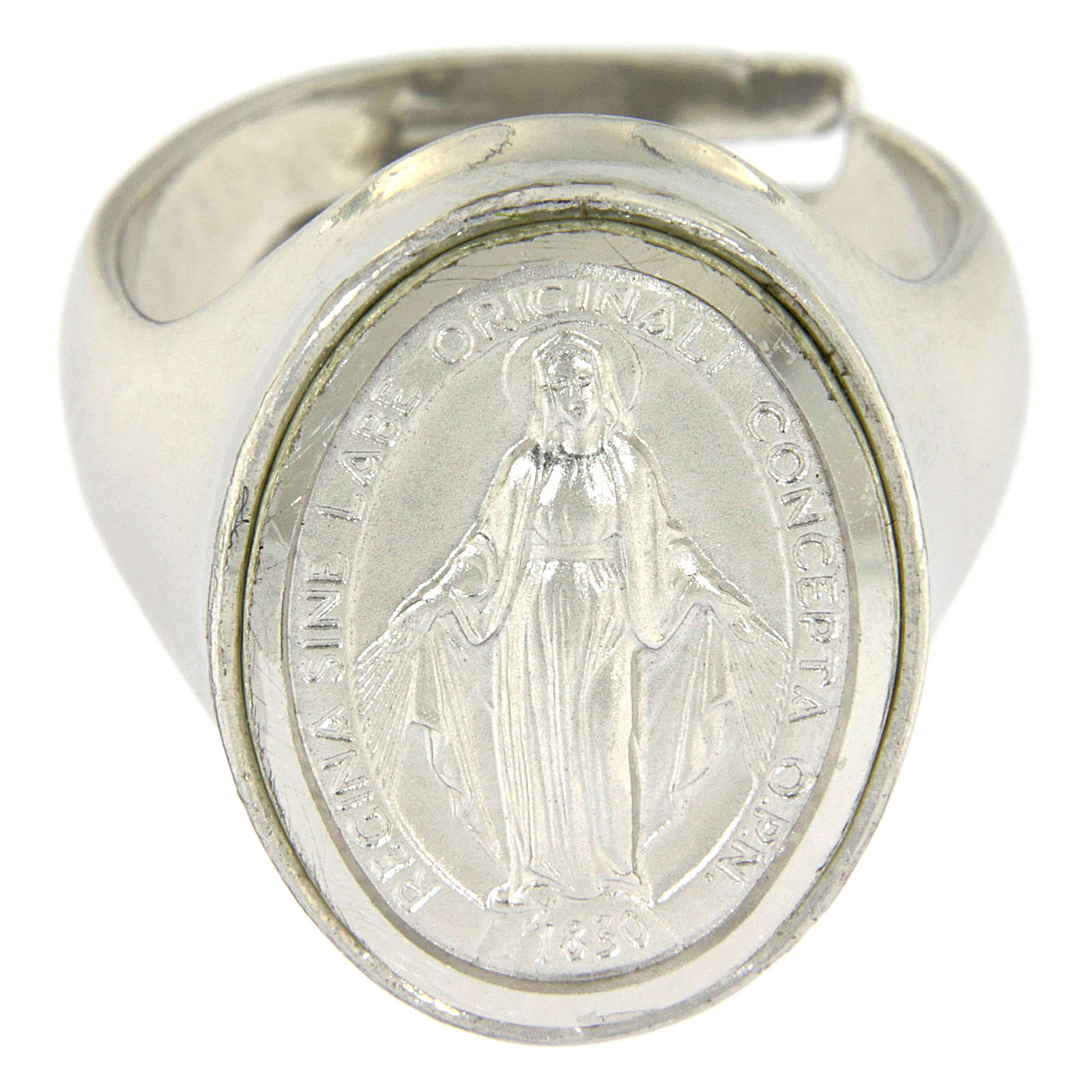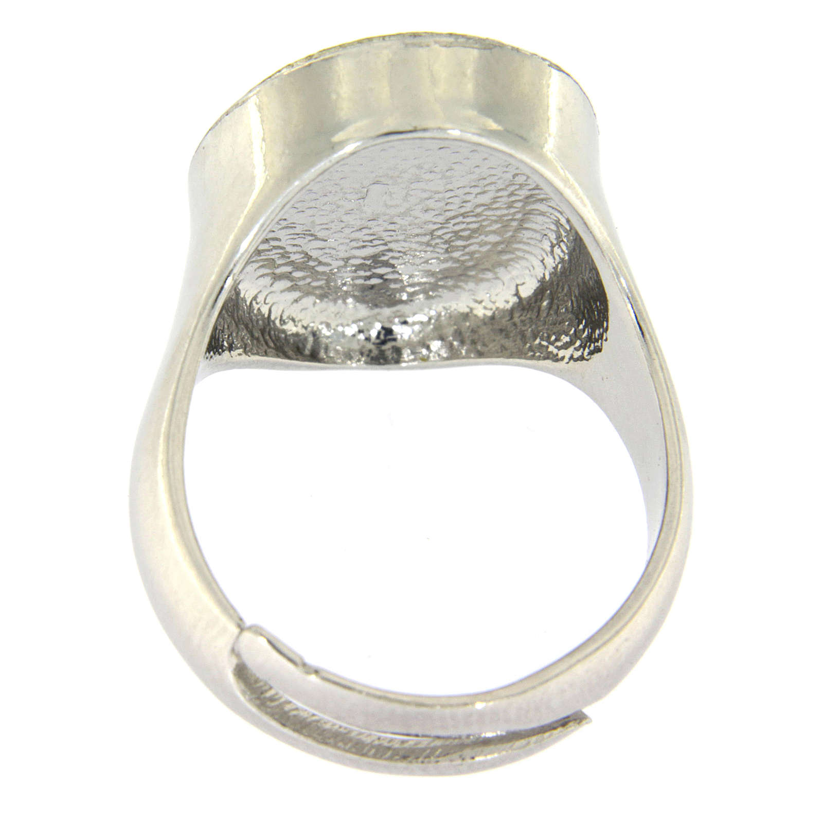 Pierścionek religijny ze srebra wyprodukowany we Włoszech.
