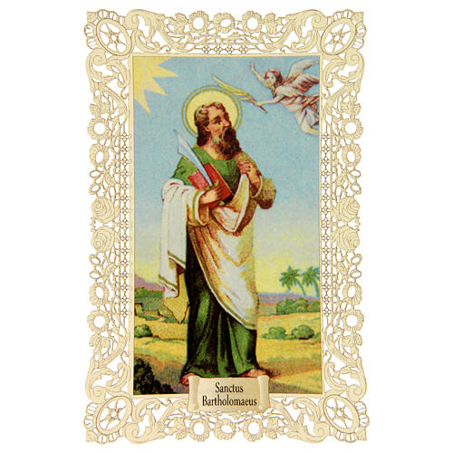 Obrazek religijny św. Bartłomiej — koronkowa dekoracja, 11x7 cm