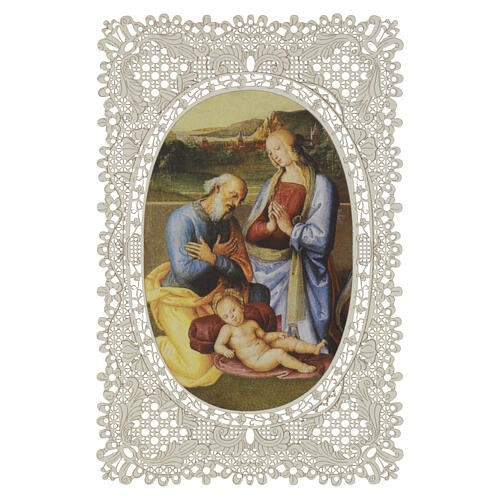 Obrazek religijny - Święta Rodzina ze śpiącym Dzieciątkiem, 12×7 cm, ażurowy ornament