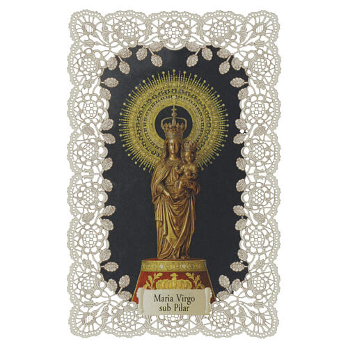 Obrazek święty - Matka Boża del Pilar, 12x7 cm, koronkowe zdobienie