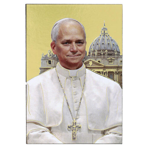 Mała ikona złocona, Papież Leon XIV, drewno, 10 x 5 cm