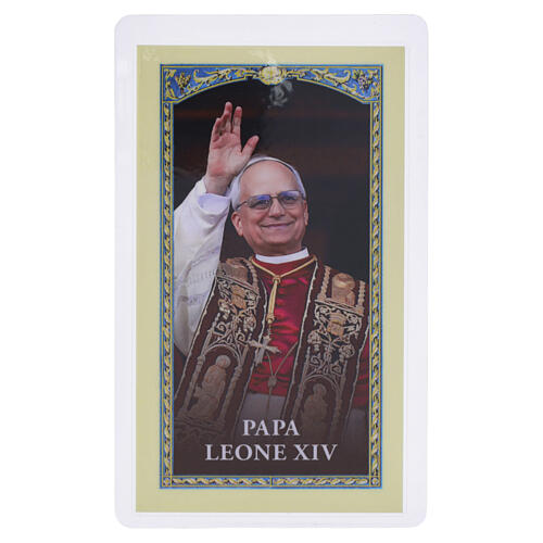 Obrazek laminowany z Papieżem Leonem XIV - z modlitwą, 11×7 cm.