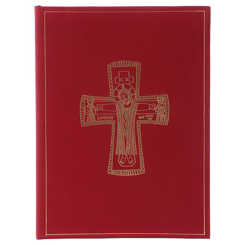 Etui na księgi liturgiczne, A4, czerwone, krzyż rzymski w złocie.