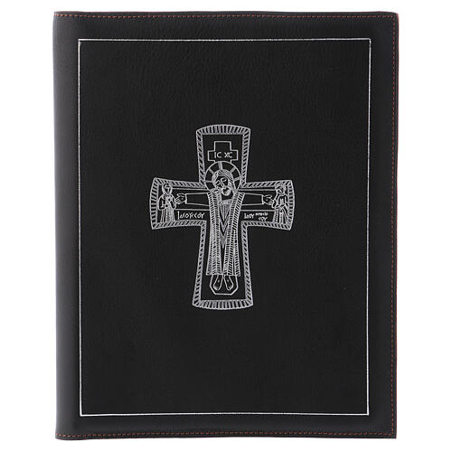 Pokrowiec na księgę liturgiczną A5, czarny z krzyżem rzymskim w srebrnym wykończeniu, Bethlèem.