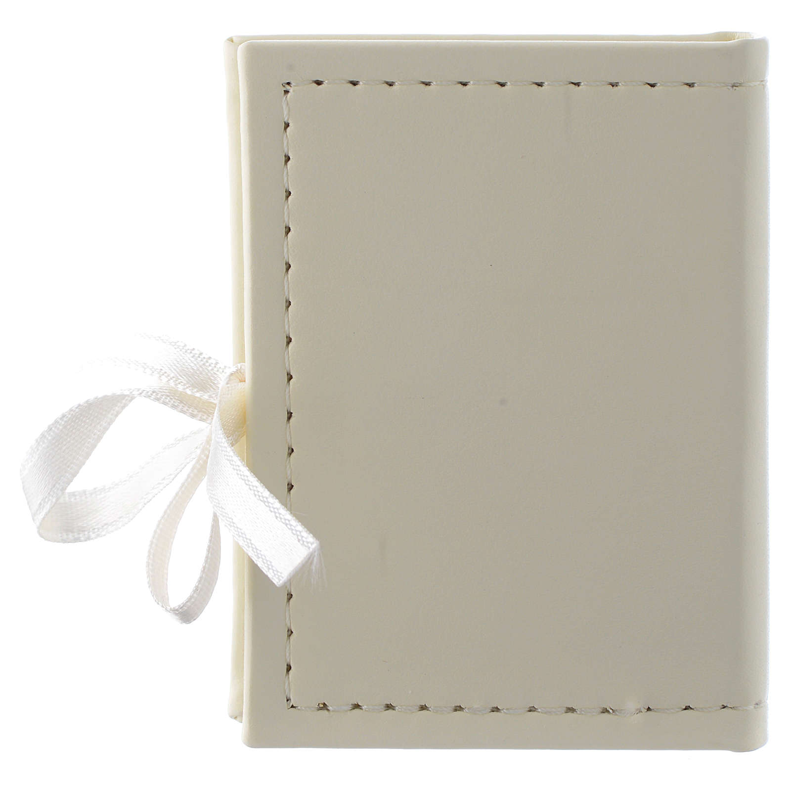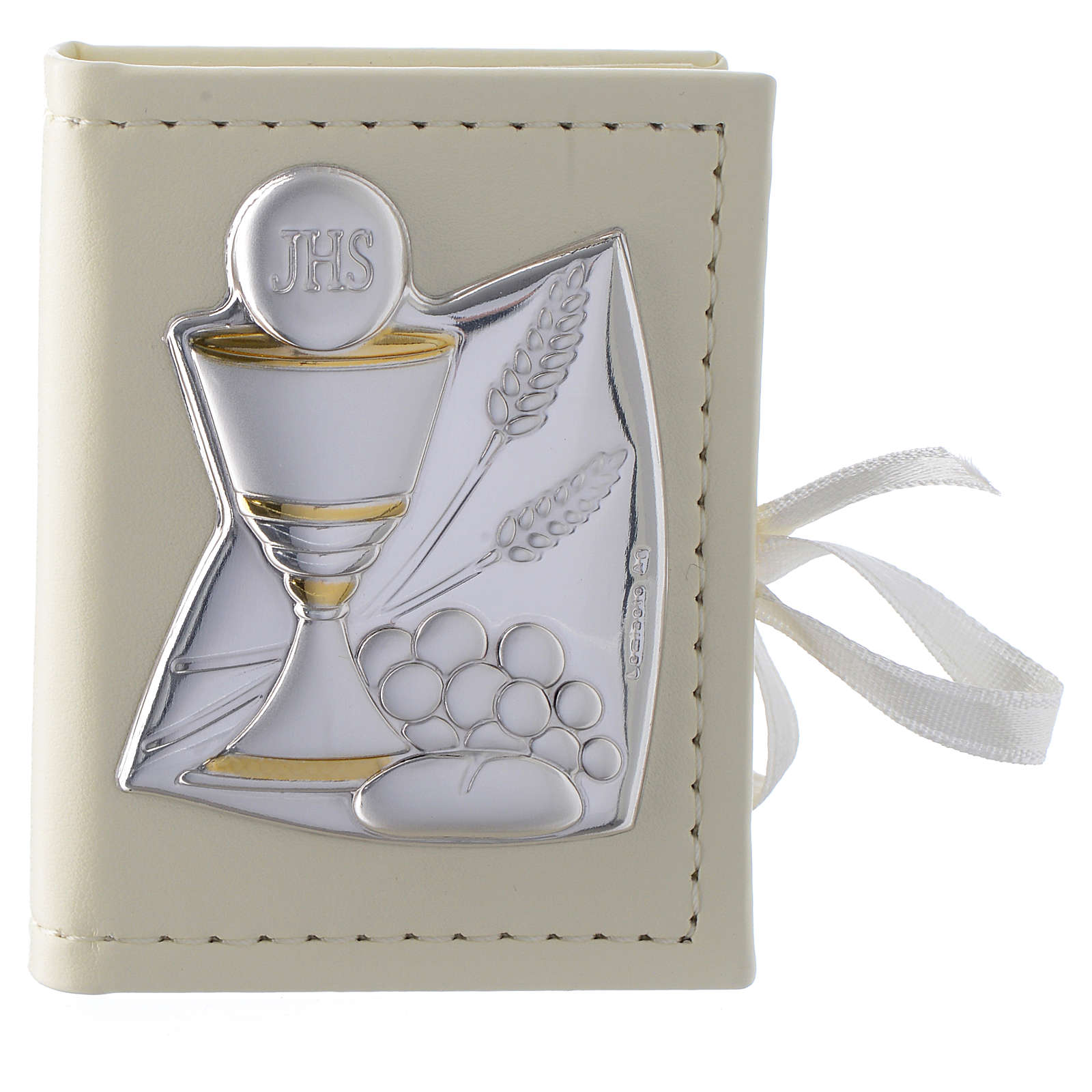 Etui na różaniec Komunia z materiału skóropodobnego i z wizerunkiem z bilaminatu srebra, kolor ecru.