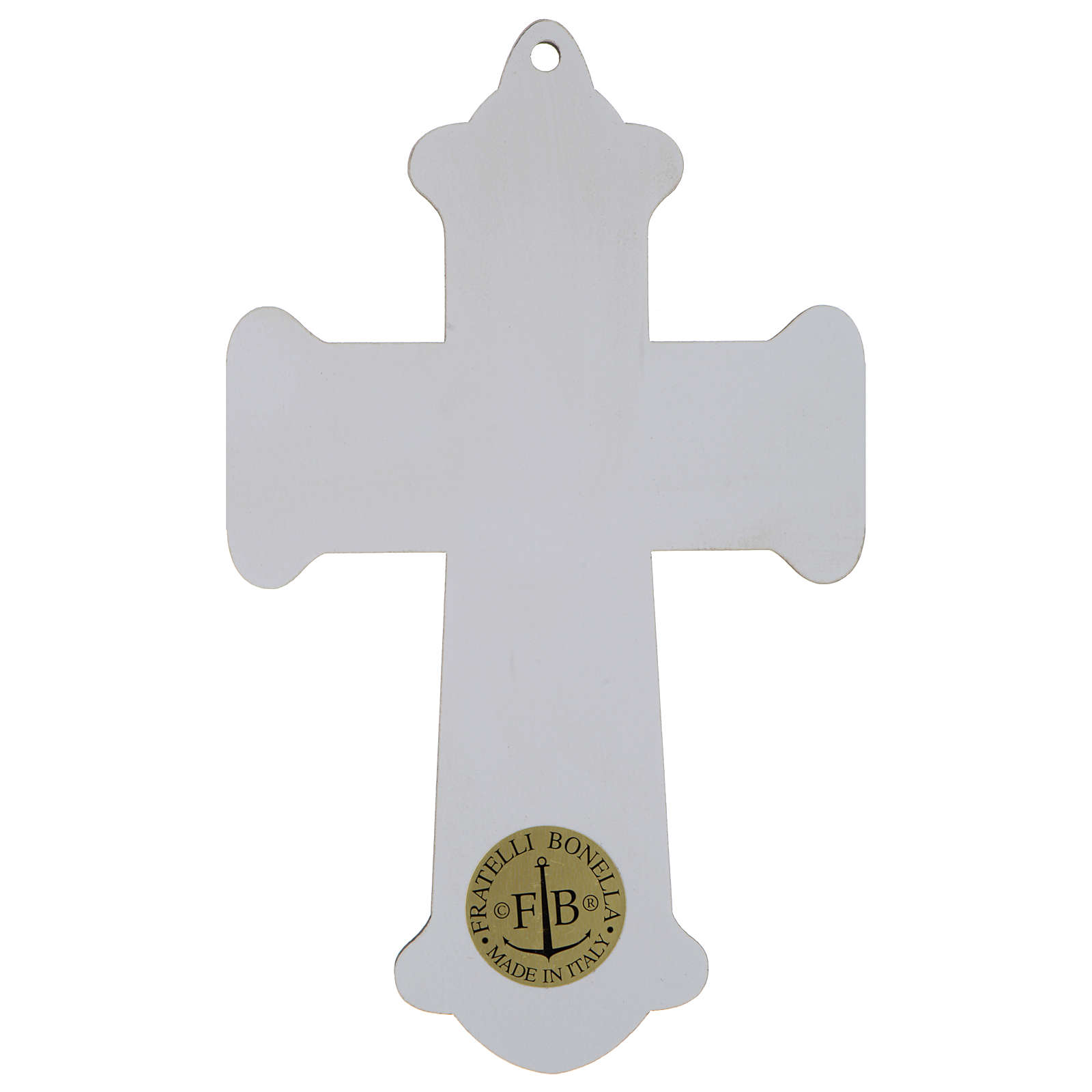 Krzyż z drewna pamiątka Pierwszej Komunii, stworzona przez grafików Fratelli Bonella, inspiruje się arcydziełami malarskimi z XIV wieku we Włoszech w ujmującej szacie graficznej, bogatej w złote szczegóły naniesione na gorąco.