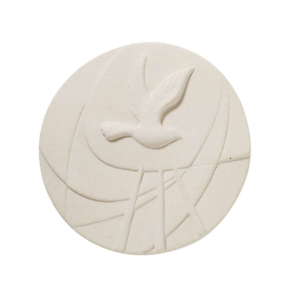 Okrąg z symbolem Ducha Świętego, dedykowany Sakramentowi Bierzmowania. Produkt ręcznie zrealizowany we Włoszech z białej gliny szamotowej.
