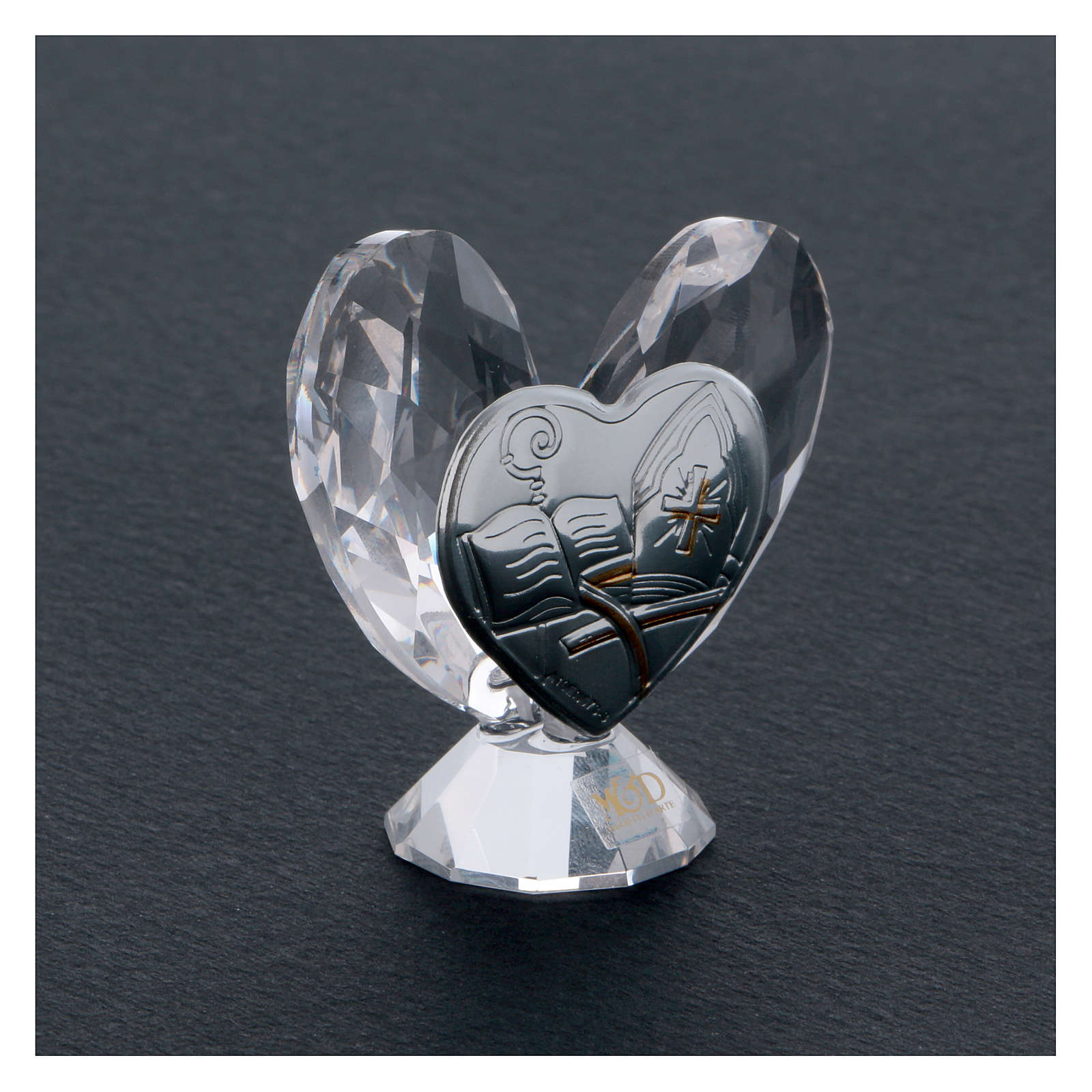 Pamiątka wykonana z kryształu i dekorowana płytką srebra przedstawiającą symbole Bierzmowania.