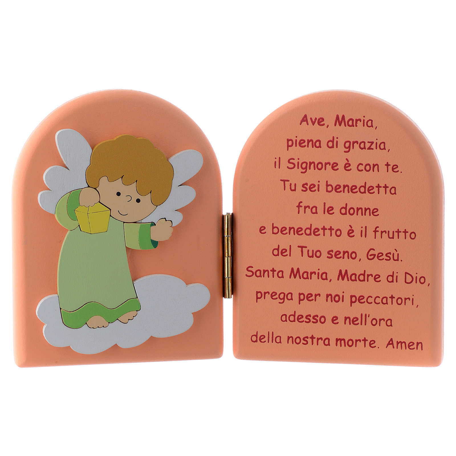 Dyptych Ave Maria i Anioł zielony drewno różowe 10x15 cm