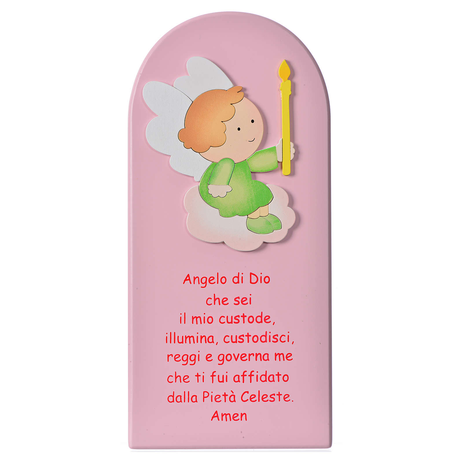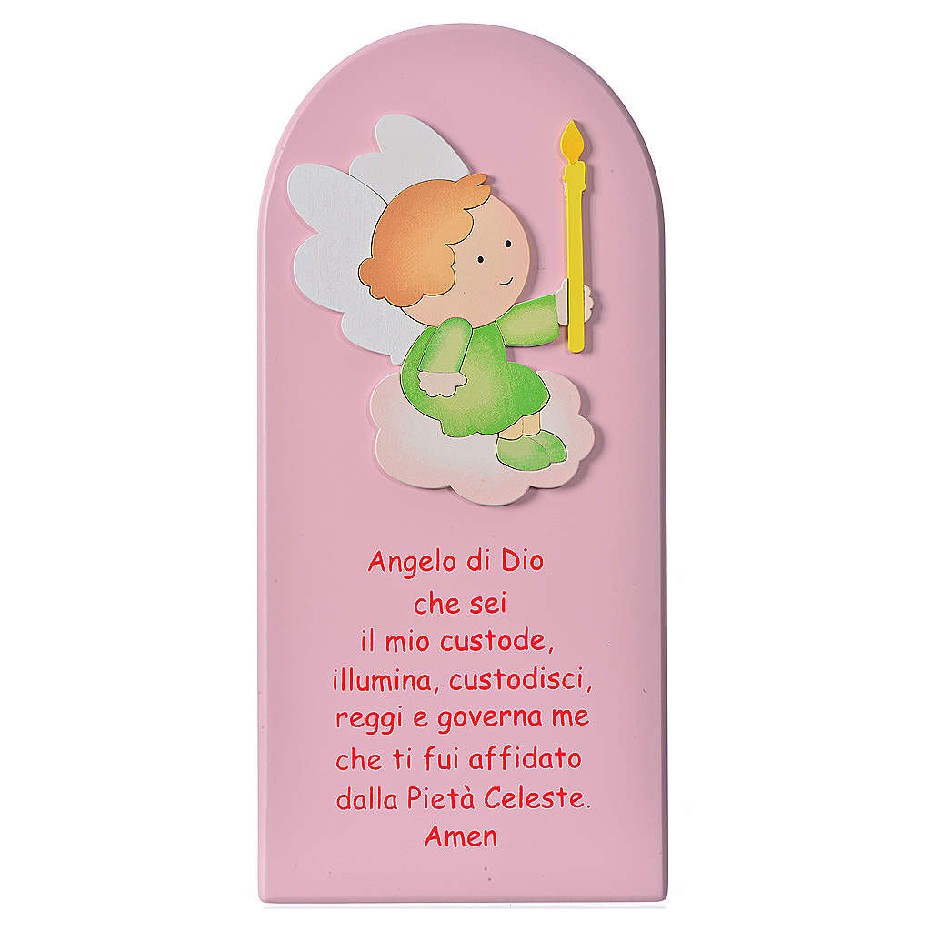 Obrazek Anioł Boży (z modlitwą 'Aniele Boży' w j. włoskim), drewno.