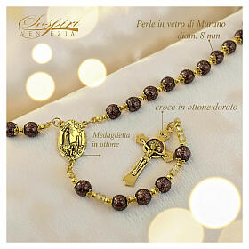 Różaniec ze szkła Murano 8 mm, czarny ze złotym wykończeniem