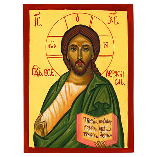 Ikona Chrystus Pantokrator, styl rosyjski, malowana na drewnie lipowym, 20x15 cm.