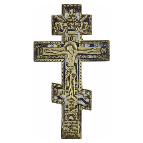 Krucyfiks prawosławny rosyjski, pocz. XIX w., brąz i emalie, 24,5 x 14 cm.