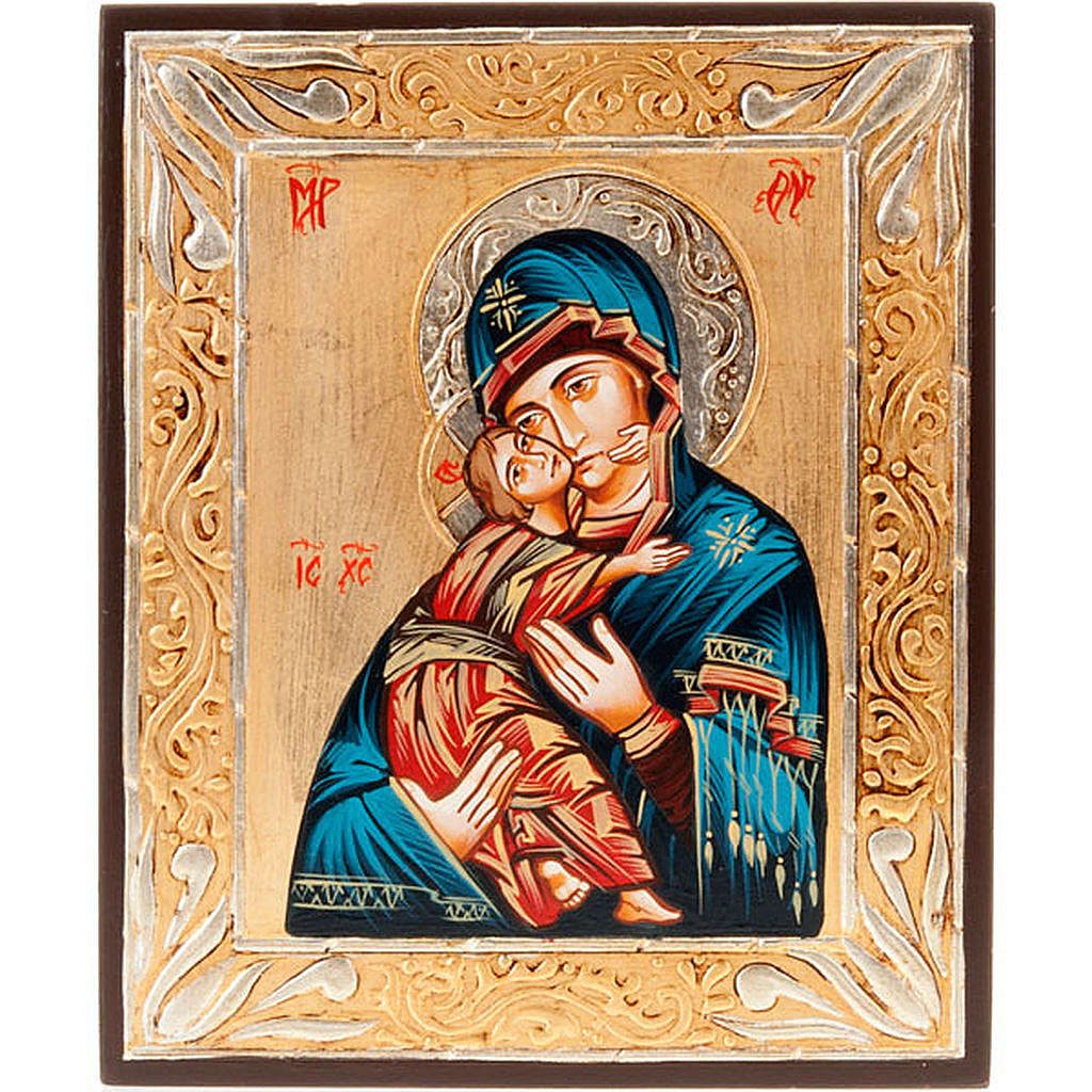 Sakralna ikona z reprodukcją wizerunku Dziewicy Włodzimierskiej w matczynej i czułej postawie, zwanej również Matką Bożej Czułości.