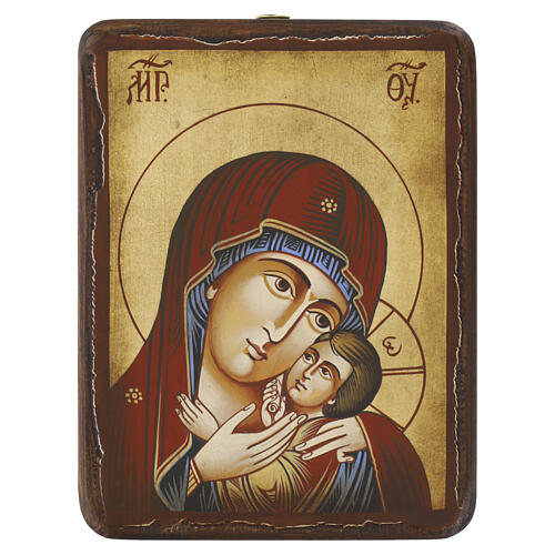 Ikona rumuńska, Matka Boża Kasperowska, styl postarzany, 18×14×2 cm