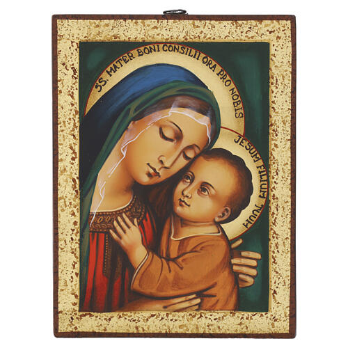 Ikona z Rumunii, Matka Boża Dobrej Rady, zielone tło, z ramką, 22x18cm.