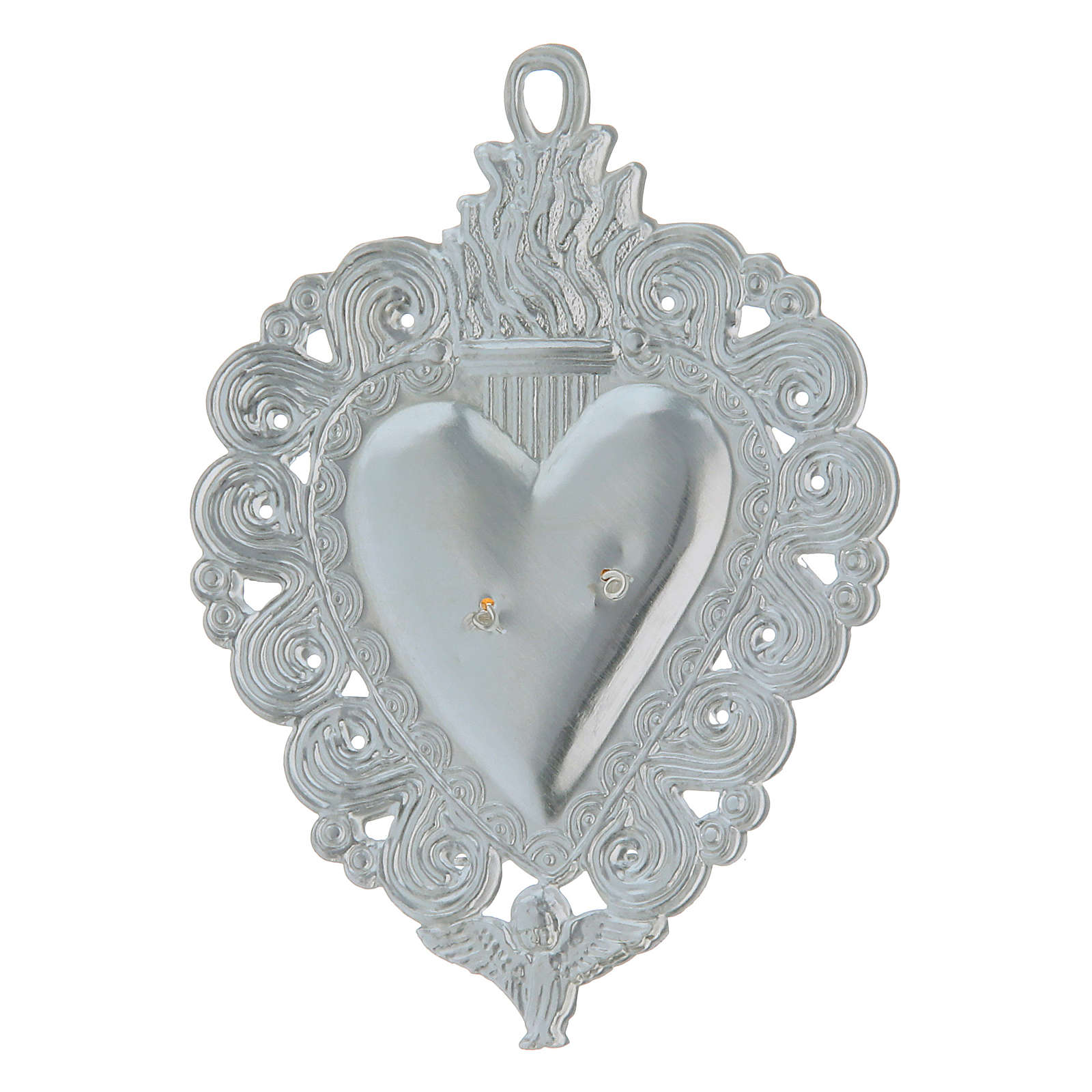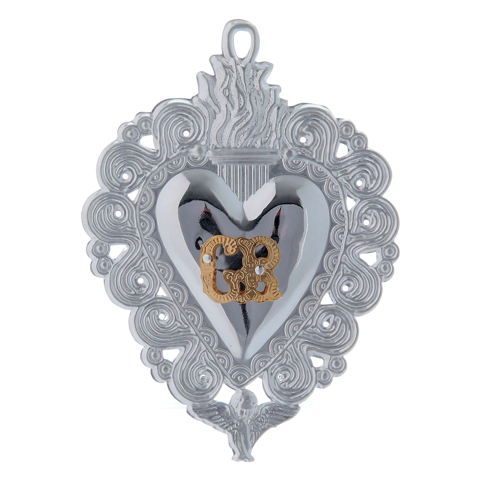Wotum Serce wotywne płomień i anioł 9,5x7,5 cm.