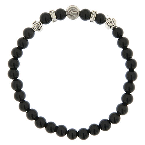 Elastyczna bransoletka Świętego Benedykta z onyksem, 6mm.