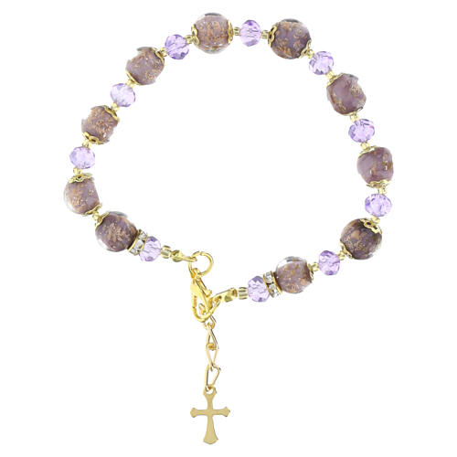 Bransoleta ROSE ze szkłem Murano 10 mm, liliowa i kryształami bohemia 5 mm