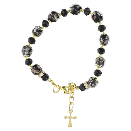 Bransoletka ROSE z czarnych pereł Murano 10 mm i pozłacanych kryształów Bohemia 5 mm.