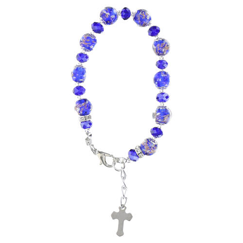Bransoletka ROSE wykonana z niebieskich pereł ze szkła Murano (10 mm) oraz fasetowanych kryształów z Bohemii (5 mm) w naprzemiennym układzie, tworząca elegancką biżuterię artystyczną.