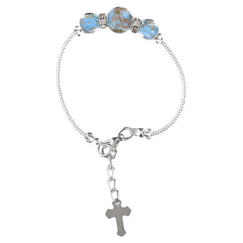 Bransoletka z Murano, jasnoniebieskie koraliki 10 mm, srebrne wykończenie