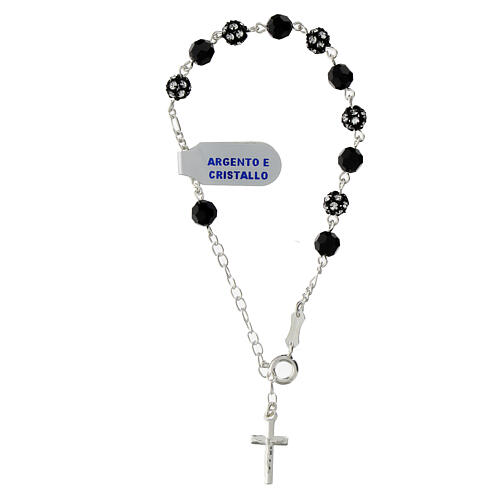 Model typu „dziesiątka” ozdobiony jest czarnymi koralikami strassball z białymi cyrkoniami oraz fasetowanymi czarnymi kryształami o średnicy 6mm.