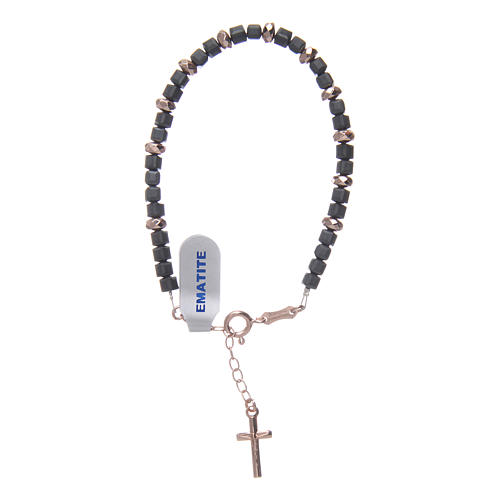 Bransoletka różaniec linka srebro 925 kulki spłaszczone hematyt rose'