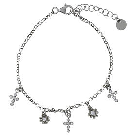 Bransoletka srebro 925, AMEN, Madonna Miracolosa, kolorowe kryształki, różowawe wykończenie