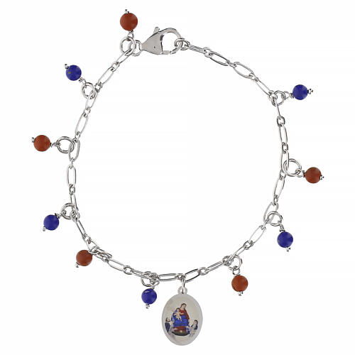 Bransoletka Amen, Matka Boża z Pompejów, jaspis czerwony i lapis lazuli, mosiądz rodowany