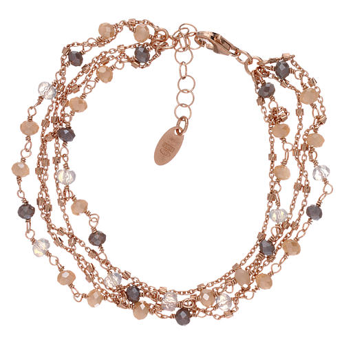 Bransoletka ze srebra rose 925, z kryształami opalizującymi fume, zrealizowana we Włoszech przez firmę AMEN wyspecjalizowaną w produkcji biżuterii.