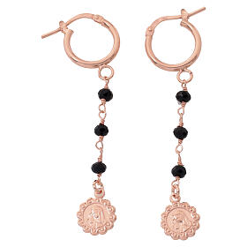Kolczyki wiszące rosé z czarnymi kryształami Madonna z Dzieciątkiem, Benedictus, srebro 925