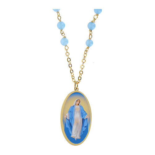 Naszyjnik z mosiądzu pozłacanego z niebieskim anielskim anhydrytem Amen, Matka Boska Cudowna