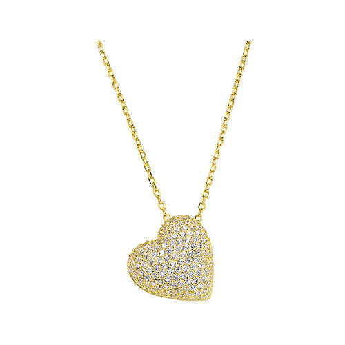 Naszyjnik serce, białe cyrkonie, AMEN, srebro 925 pozłacane.