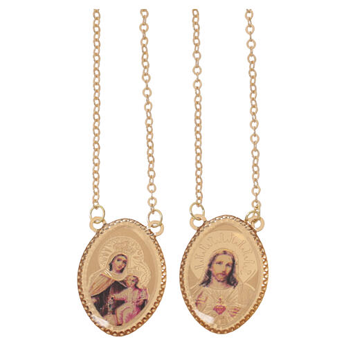 Szkaplerz kolorowe wizerunki, złoto żółte 750/00, waga: 4,85 g.