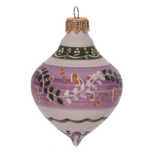 Bombka bożonarodzeniowa dwuostrzowa z terakoty Deruta – 60 mm, fioletowa
